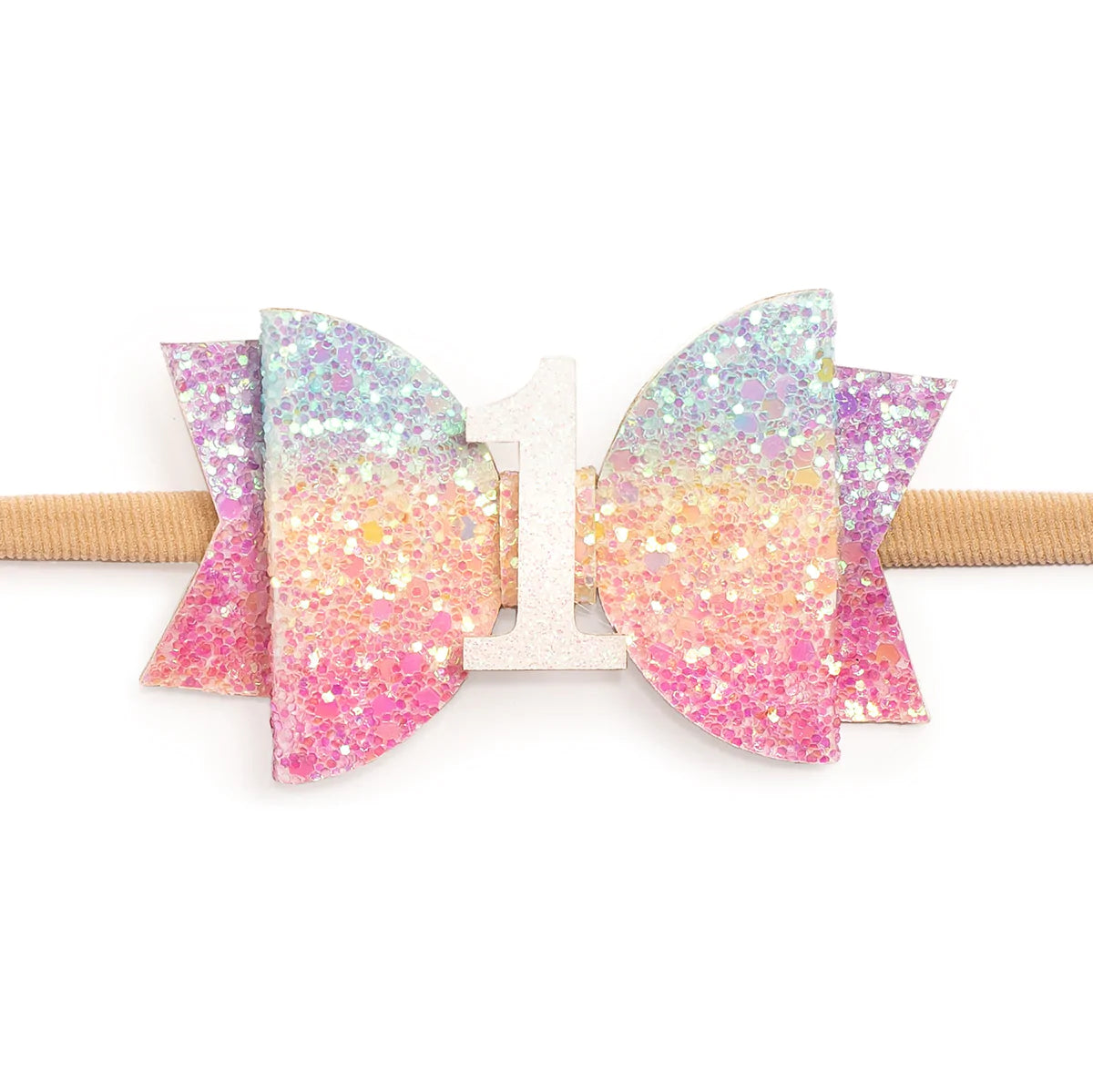 1st Birthday Pastel Rainbow Bow Soft Headband