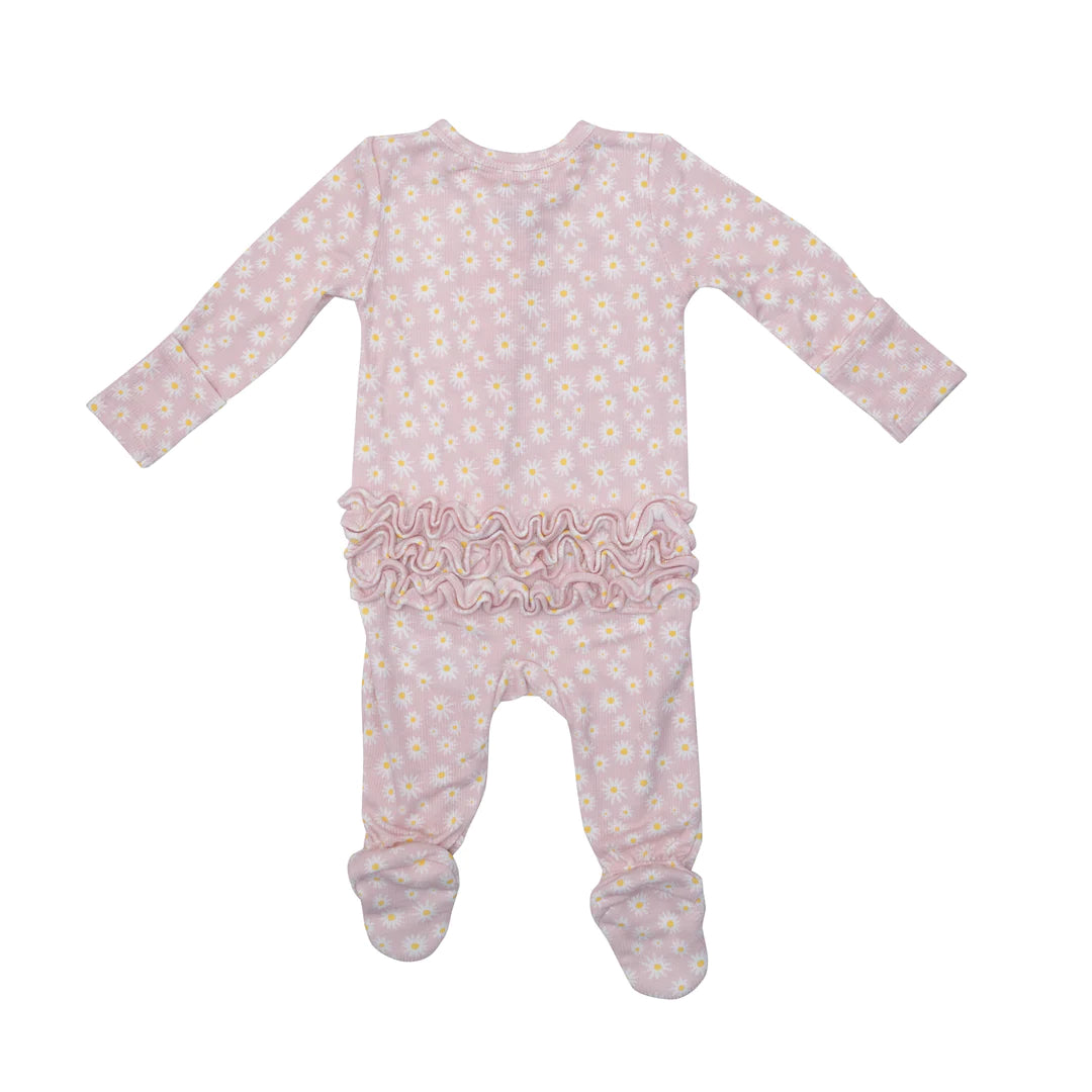 2 Way Ruffle Zipper Footie - Little Daisy Rib