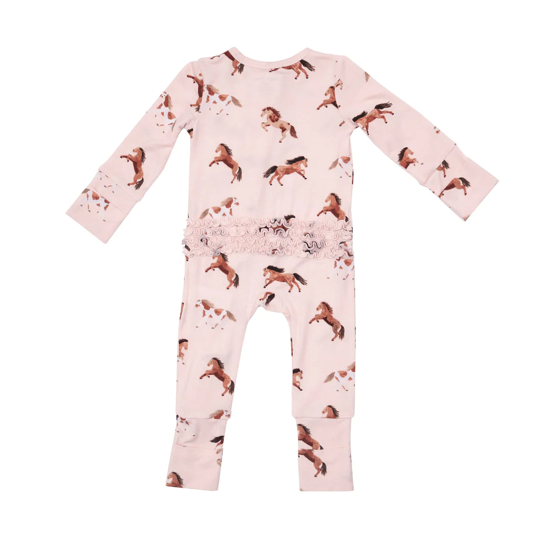 2 Way Ruffle Zipper Romper - Pink Horses