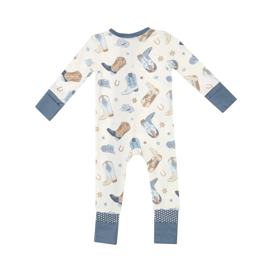 2 Way Zipper Romper - Cowboy Boots Blue