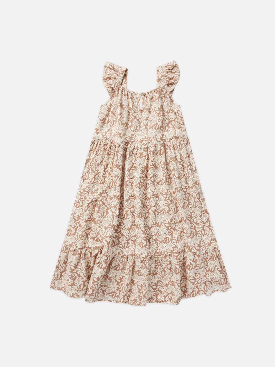 This tiered maxi dress features ruffle straps and has a flowy tiered fit that makes it perfect for whirling and twirling.