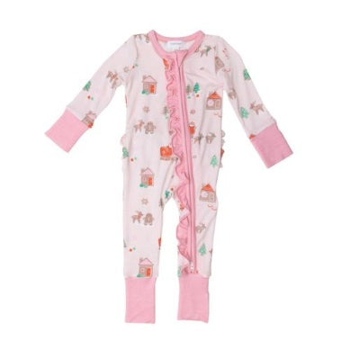 2 Way Zipper Romper - Gingerbread Sleigh Pink