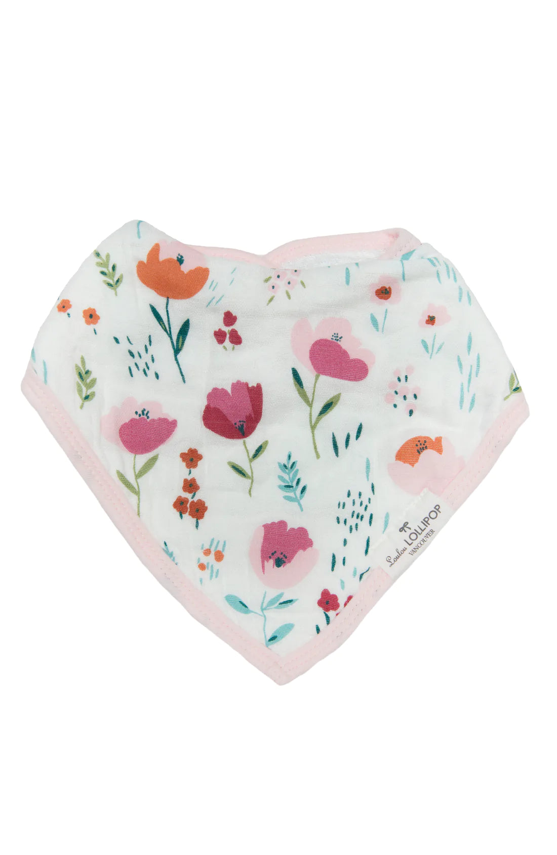 Our muslin bandana bibs have a super-absorbent and buttery-soft bamboo terrycloth backing to withstand dribbles, spit-ups, and spills and prevent irritations. The bibs feature a front neck panel that goes over the trim to eliminate neck irritation. Three adjustable nickel-free snaps to fit babies from three to 36 months. Available in a wide variety of fun prints and designs, these are the only drool bibs you will need. Manufactured at an OEKO-TEX Standard 100 certified factory, you can feel confident that our bandana bibs are free of toxic chemicals and safe for your baby.