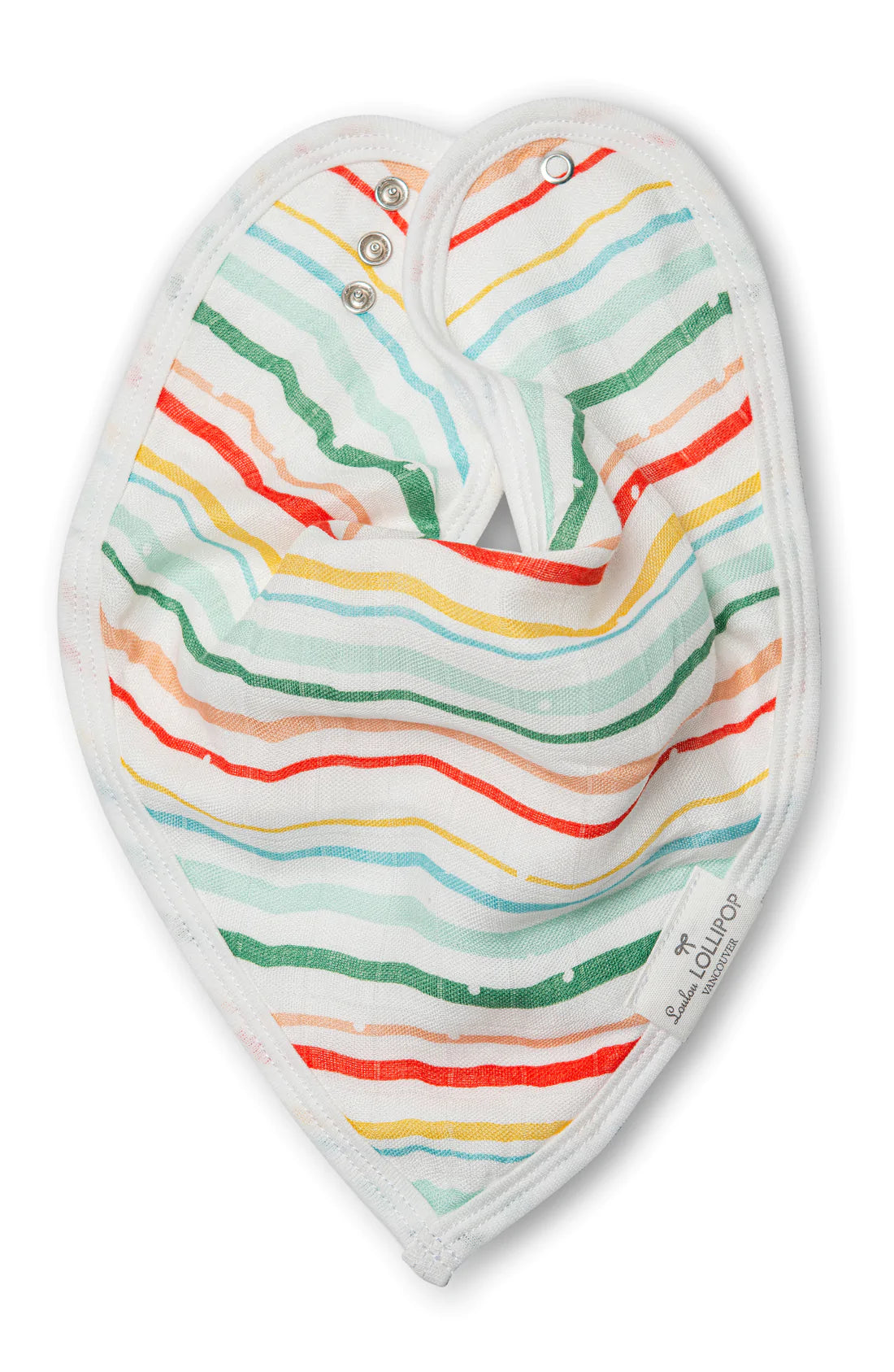 Our muslin bandana bibs have a super-absorbent and buttery-soft bamboo terrycloth backing to withstand dribbles, spit-ups, and spills and prevent irritations. The bibs feature a front neck panel that goes over the trim to eliminate neck irritation. Three adjustable nickel-free snaps to fit babies from three to 36 months. Available in a wide variety of fun prints and designs, these are the only drool bibs you will need. Manufactured at an OEKO-TEX Standard 100 certified factory, you can feel confident that our bandana bibs are free of toxic chemicals and safe for your baby.