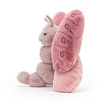 Fluttering in with a cheeky grin, it's beautiful Beatrice Butterfly! Rosy and cosy with a beany bottom, soft textured wings and suedey antennae, this bobbly buddy loves yummy nectar and playing all day in the garden!