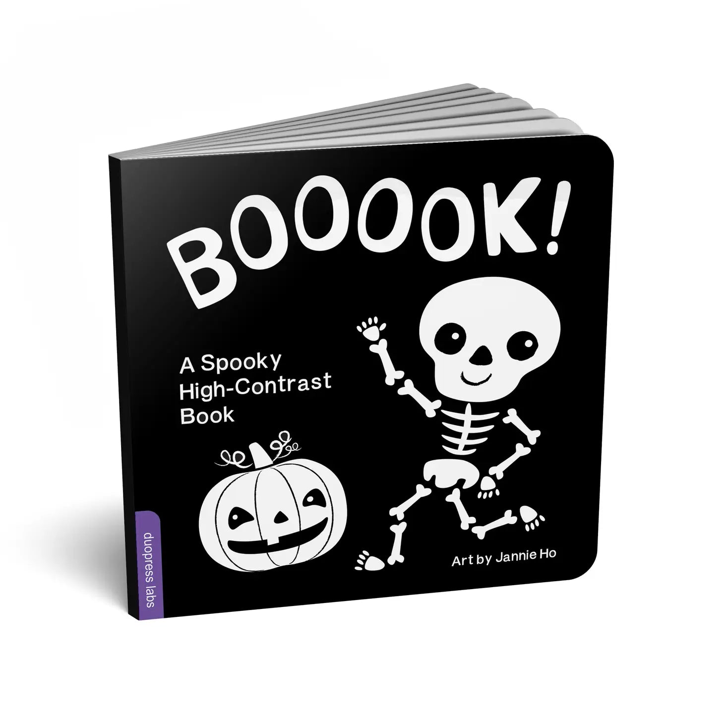 Alongside lovely black-and-white art by jannie ho, booook! A spooky high-contrast book is a perfect book for babies just beginning to learn about their world.