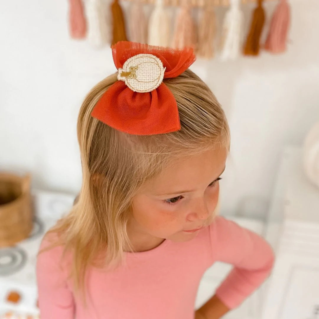 Every little girl needs the perfect pumpkin hair clip to complete her Fall wardrobe! The Pumpkin Tulle Bow Hair Clip is a fun way to celebrate Fall.