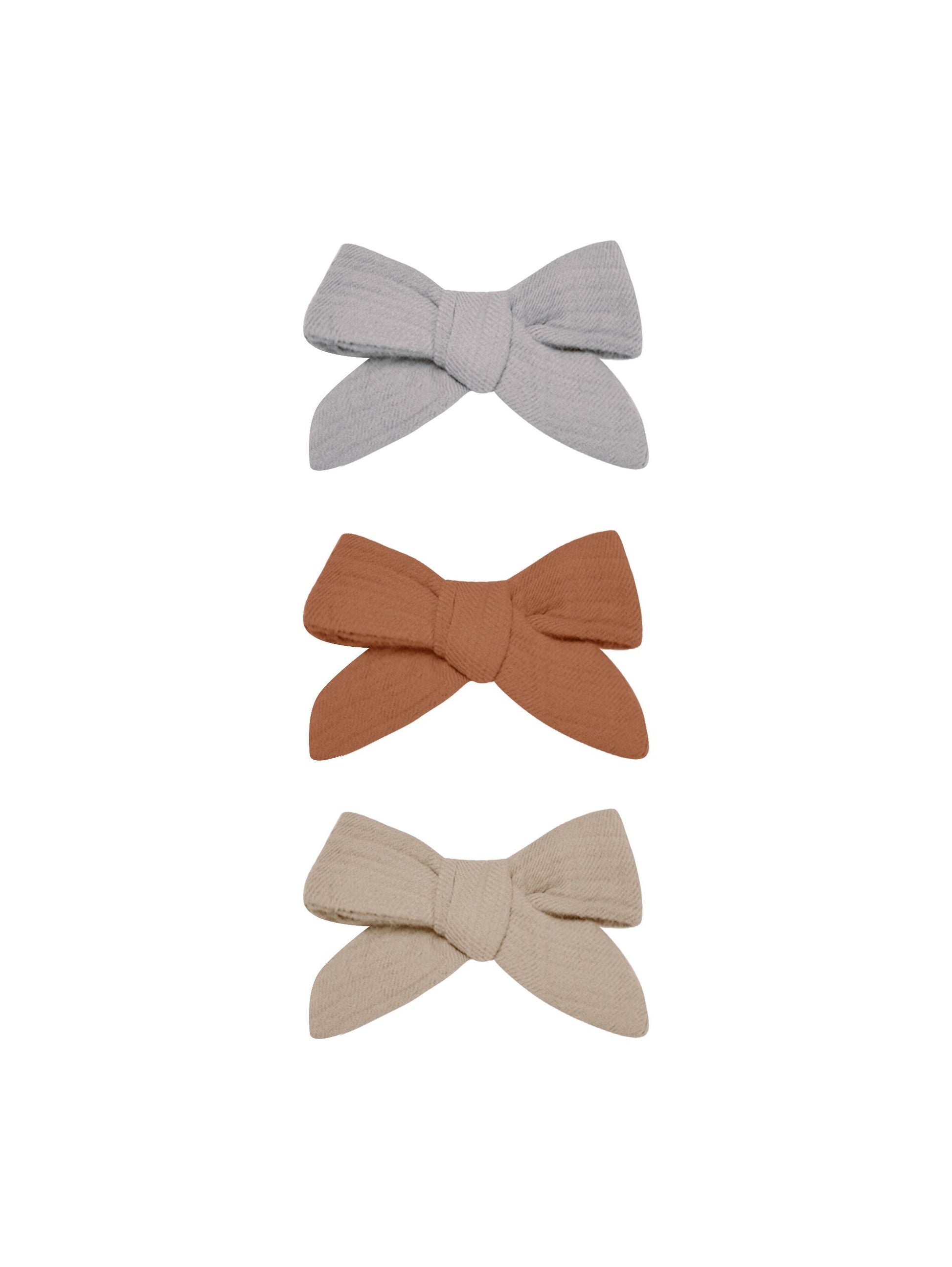 bow w. clip, set of 3 || periwinkle, clay, oat