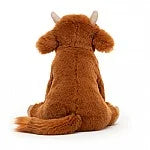 Callie Cow is a caramel cutie, with scrummy, snuggly tufty fur. Flumpy and dreamy, this curious calf has butterscotch hooves and a suedey stitchy muzzle. With flip-flap ears, a tassel tail and squidgy horns, Callie's a perfect pal!
