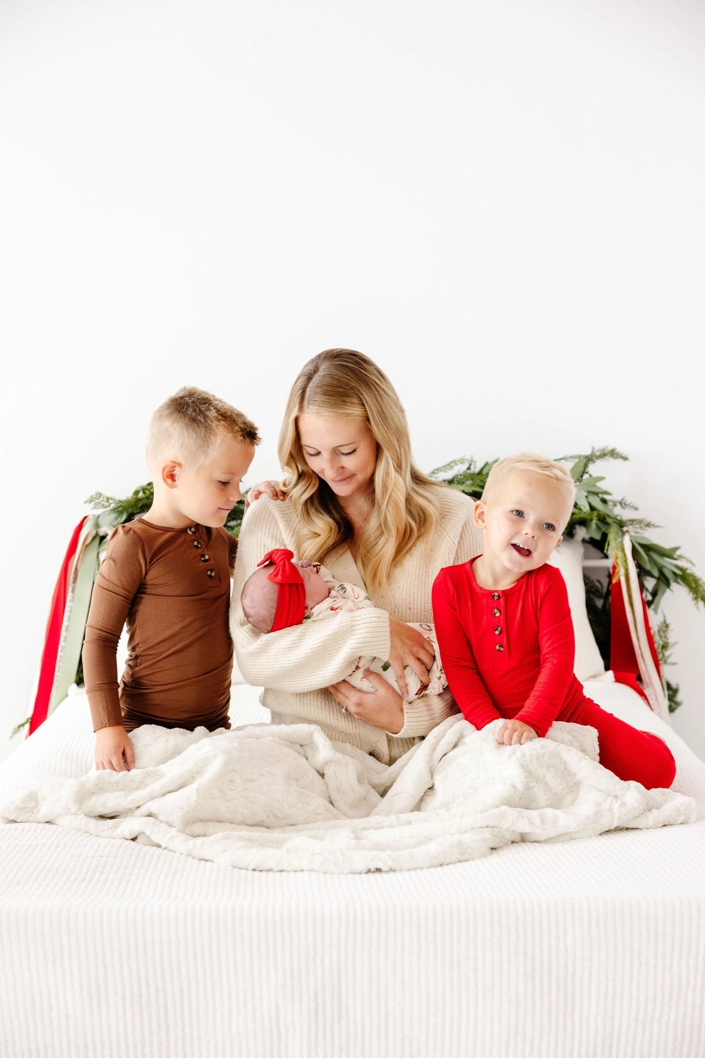 Good things come in pairs and our tops + bottoms are no exception. They’re made from our signature silky-soft material for a stretchy, comfy fit with functional buttons and fold-over waistband for room to grow (or to wear high-waisted). Say goodbye to socks that slip right off with built-in footies (on the newborn size only) to keep those tiny toes warm without the fuss. Unbelievably sweet mixing & matching approved.