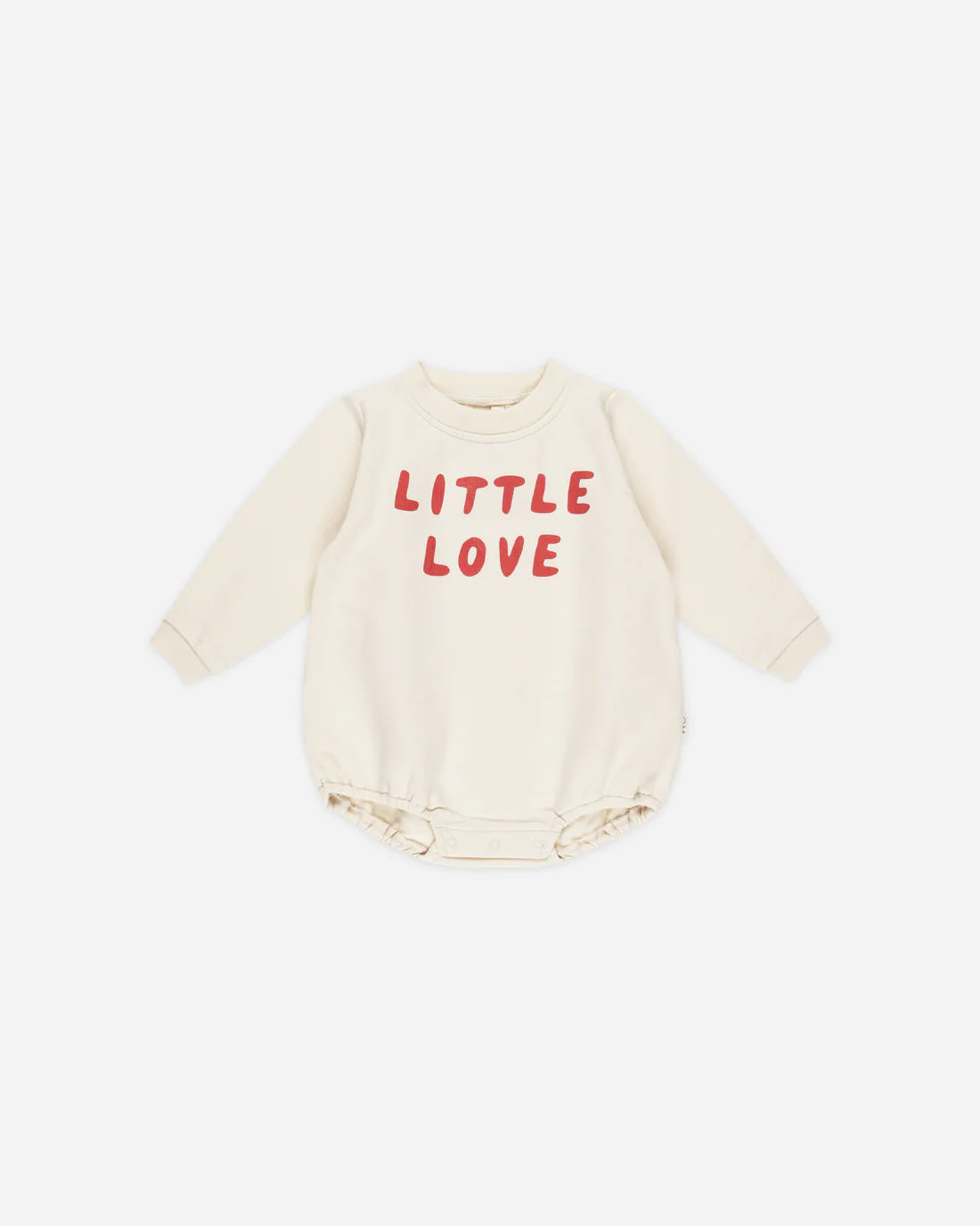 Long sleeve bubble romper featuring elastic leg openings and a bottom snap closure for easy changes. This sweet and easy look is perfect for the changing seasons.