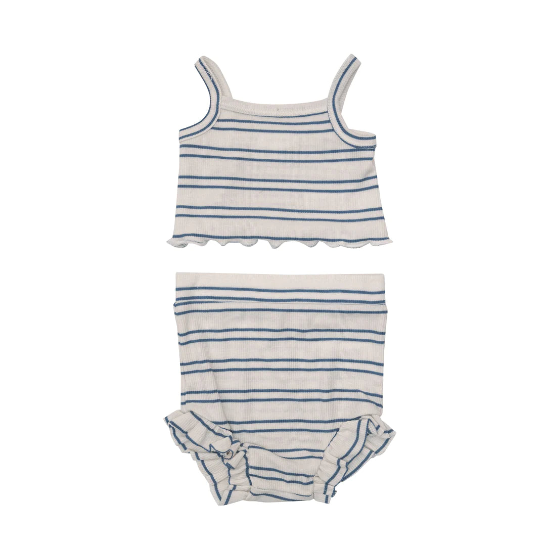 Crop Top & High Waisted Short - Blue Rib Stripe
