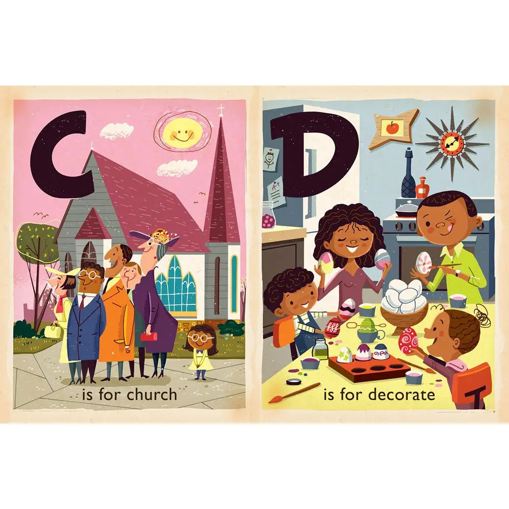 In the latest alphabet primer from artist Greg Paprocki, Easter and the rites of spring are celebrated with Paprocki’s wonderful colorful and vintage-looking illustrations. Your toddlers can enjoy illustrations of such things as the Easter Bunny, baskets overflowing with candy, children decorating Easter eggs, an Easter egg hunt, and beautiful springtime flowers.