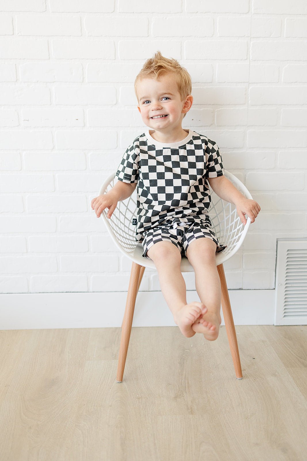 Our Frankie Set will be an instant classic in your little one's closet. The all over checkered print brings the retro vibes you'll love and the soft and comfy material means your little one will love wearing it.