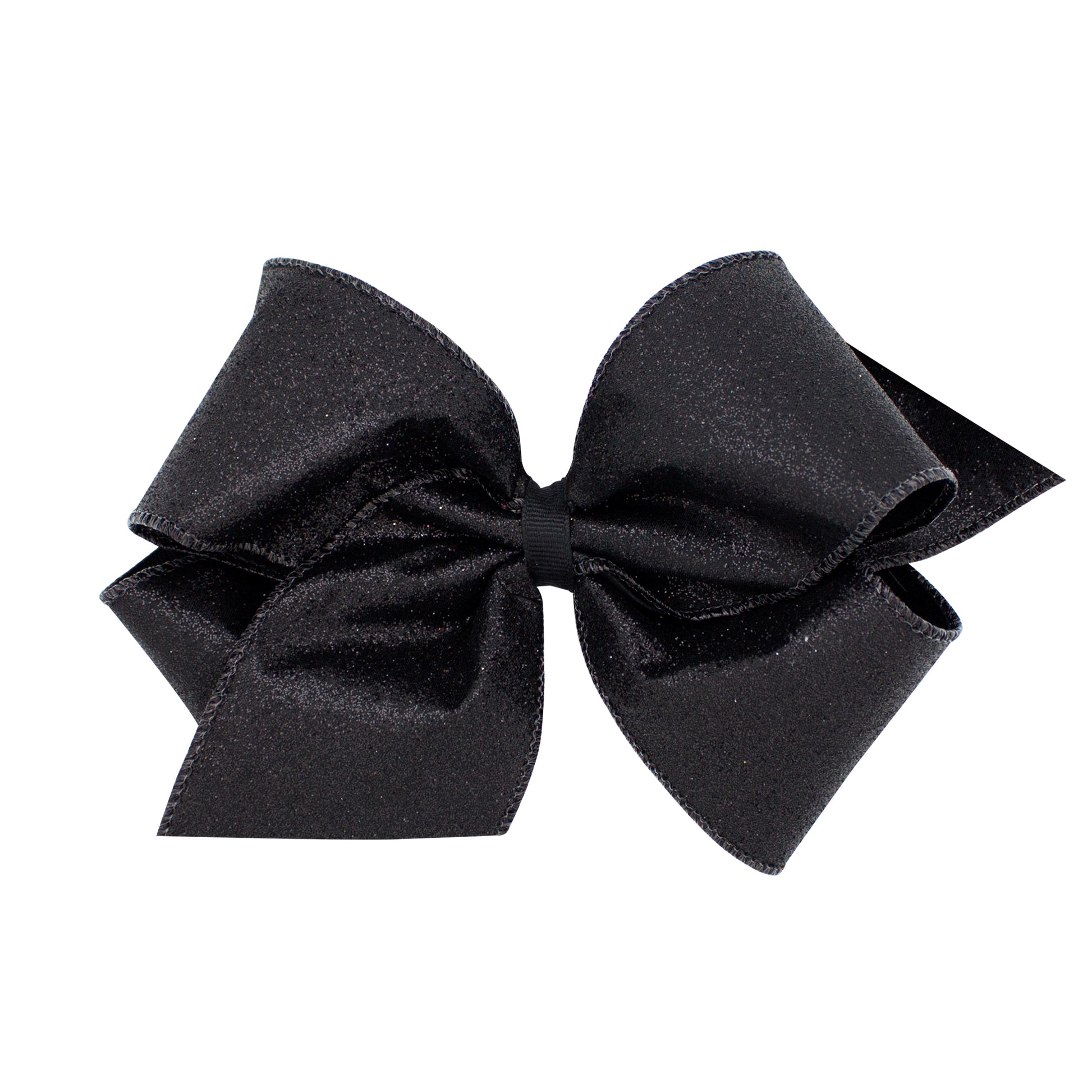 The ultimate hair bow in a color to match every outfit! King glitter and grosgrain overlay bow. These bows are sure to stay in her hair all day with our patented WeeStay™ no-slip hair clip.