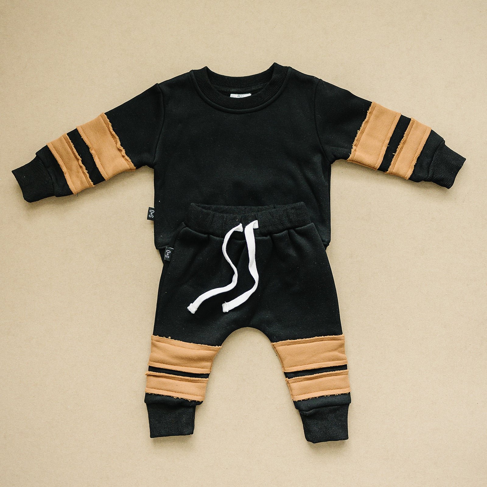 Keep your little one cozy and comfy with the Lennox Jogger Set! This two-piece set features thick and soft fleece material, raw cut stripes on the arms and legs, and a functional drawstring to keep them snuggly all day long! So cuddle up and bundle up in this super soft and cozy set!