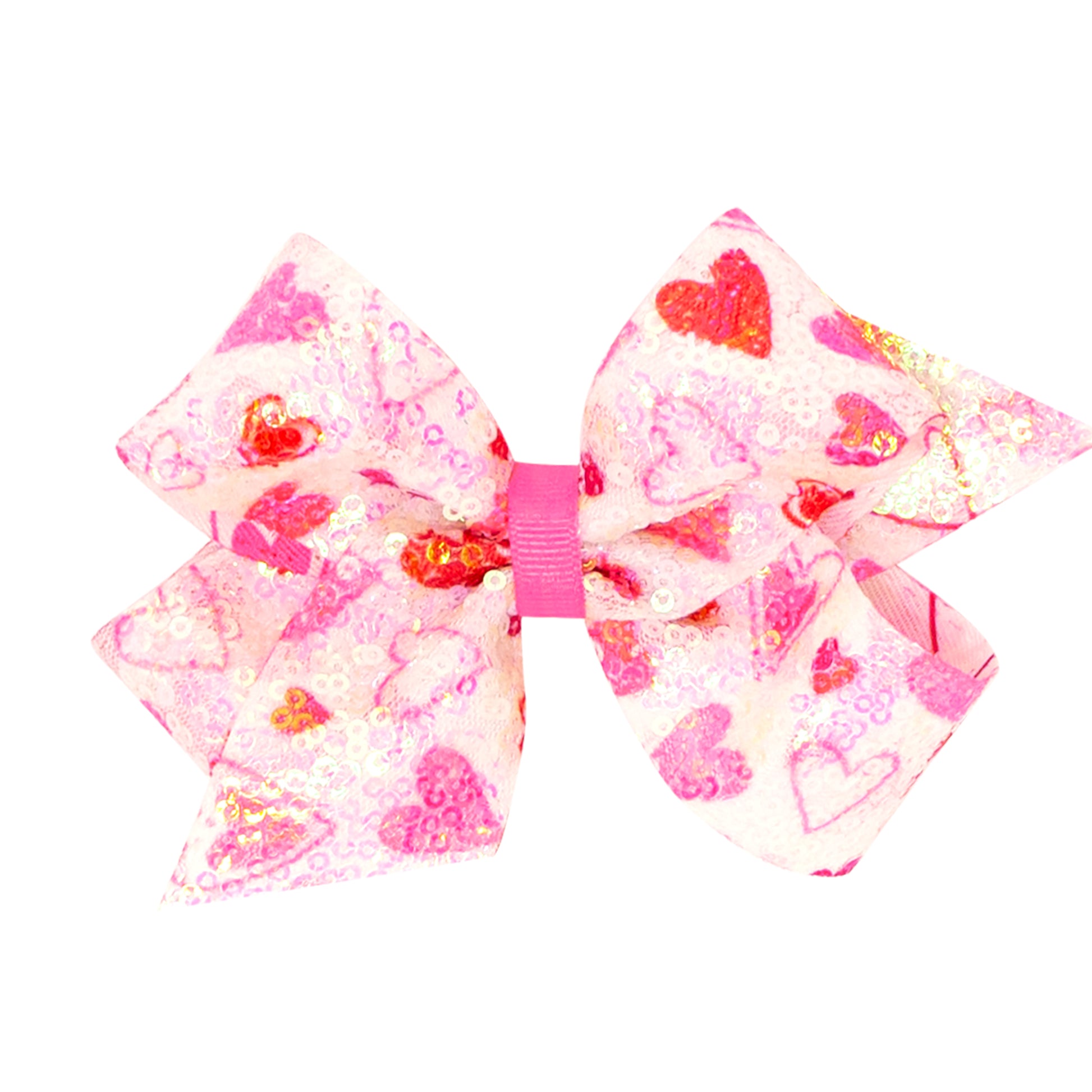 Let her sparkle with this adorable sequined hair bow for girls featuring red and pink printed hearts. This bow is sure to stay in her hair all day with our patented WeeStay™ no-slip hair clip. Perfect for a sweetheart of a instashot!
