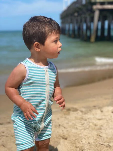 Pablo- Aqua/White Ribbed Playsuit