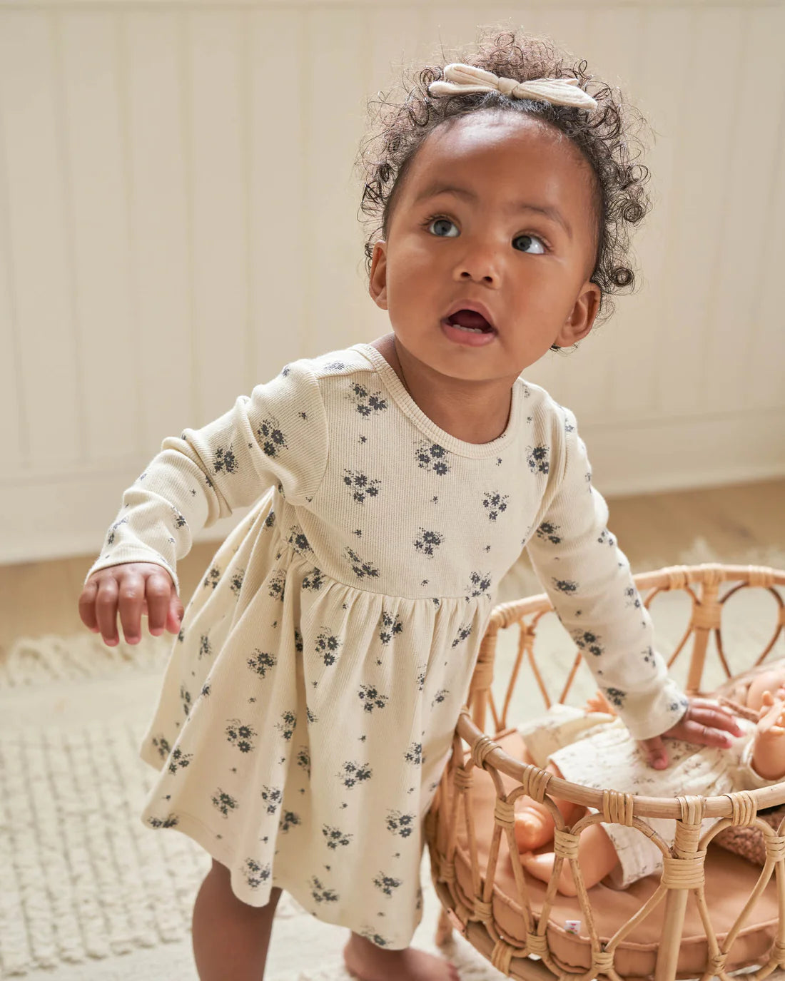 Ribbed Long Sleeve Dress || Navy Ditsy