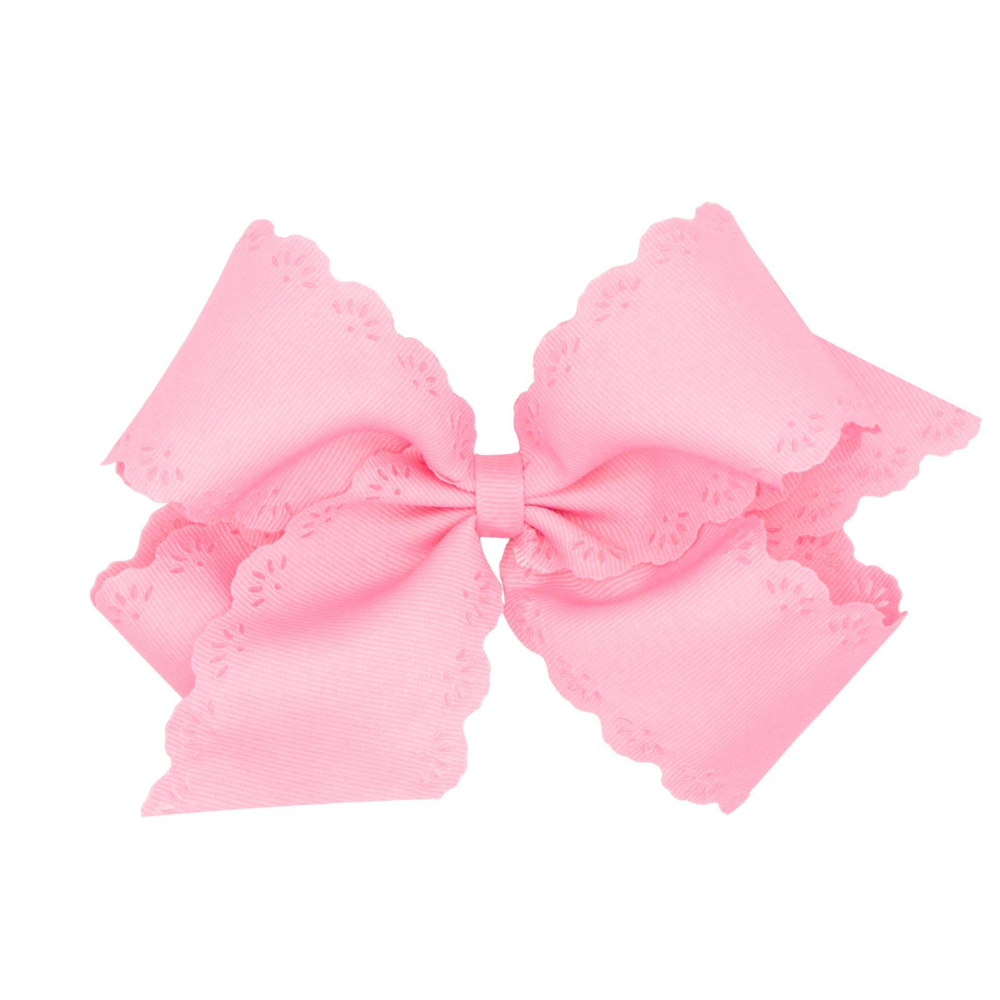 This small grosgrain bow with a delicate floral eyelet embossed edge adds a soft and pretty touch to any outfit. This bow is sure to stay in her hair all day with our patented WeeStay™ no-slip hair clip.