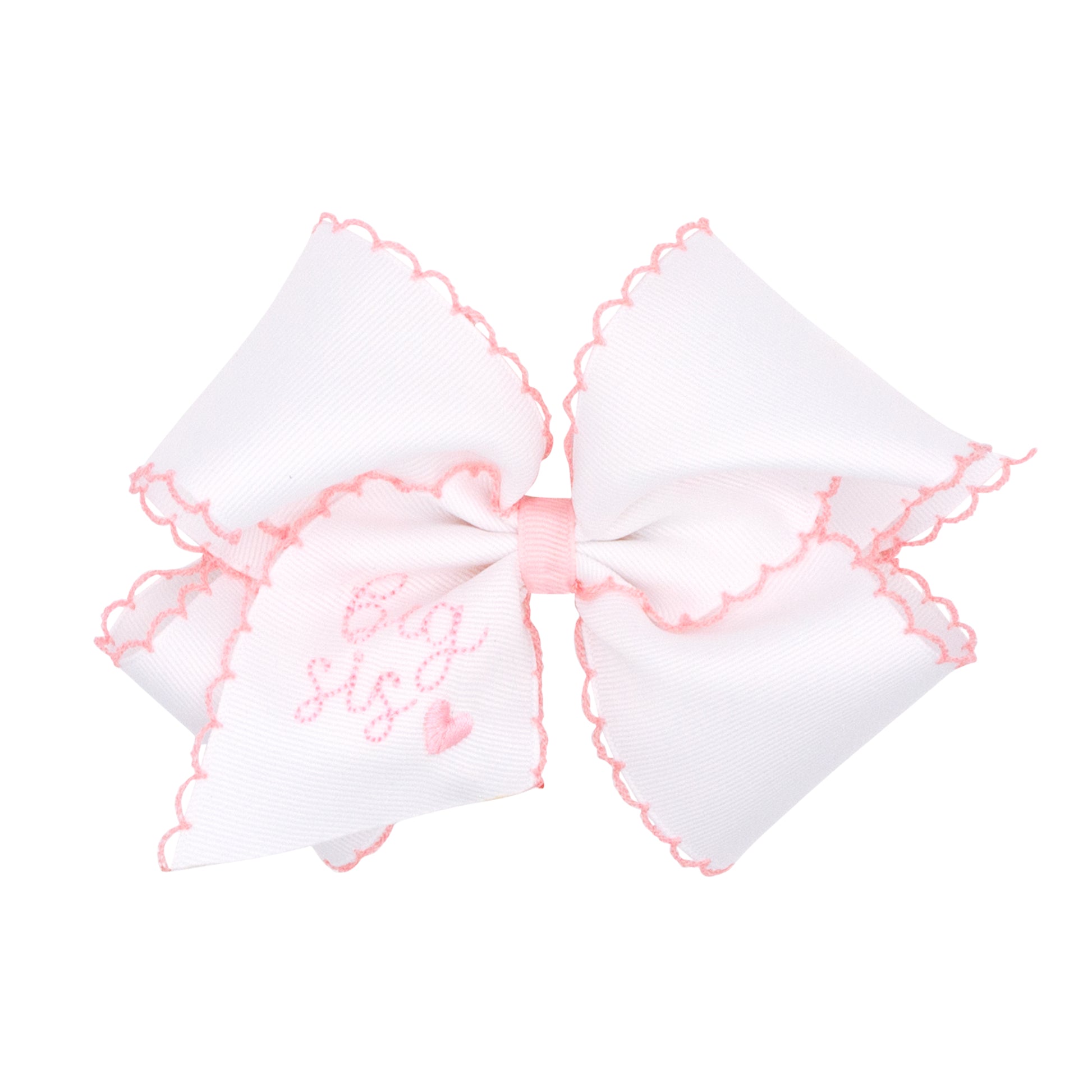 Let big sister girl proudly show off her status with this adorable moonstitch hair bows for girls that's monogrammed with big sis on the tail in a small king size. This bow is sure to stay in her hair all day with our patented WeeStay™ no-slip hair clip.