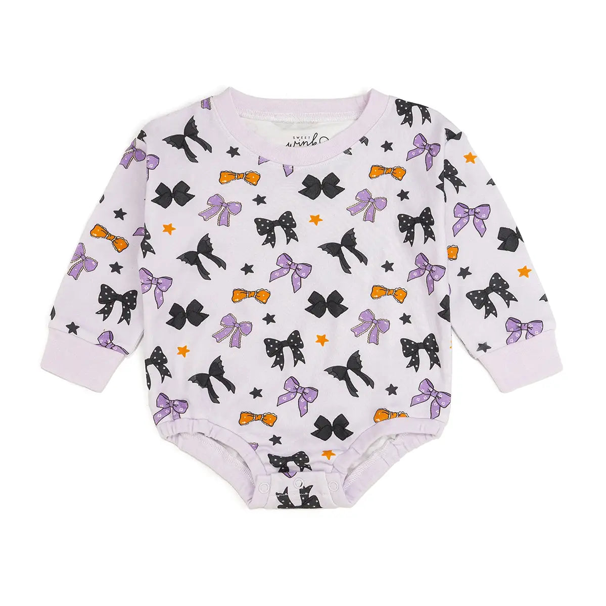 Features: *Romper Color: Soft Purple *Graphic Color: Black, Lavender, Orange, White, Tan, Charcoal Gray *Material: 100% Cotton *Features: Tagless inside neck label for an itch-free wear; 3 snap closure; cuffed sleeves; trendy bubble style *Fit: Infant Unisex *Care: Machine wash cold inside out, only non-chlorine bleach, tumble dry low, do not iron on decoration, do not dry clean