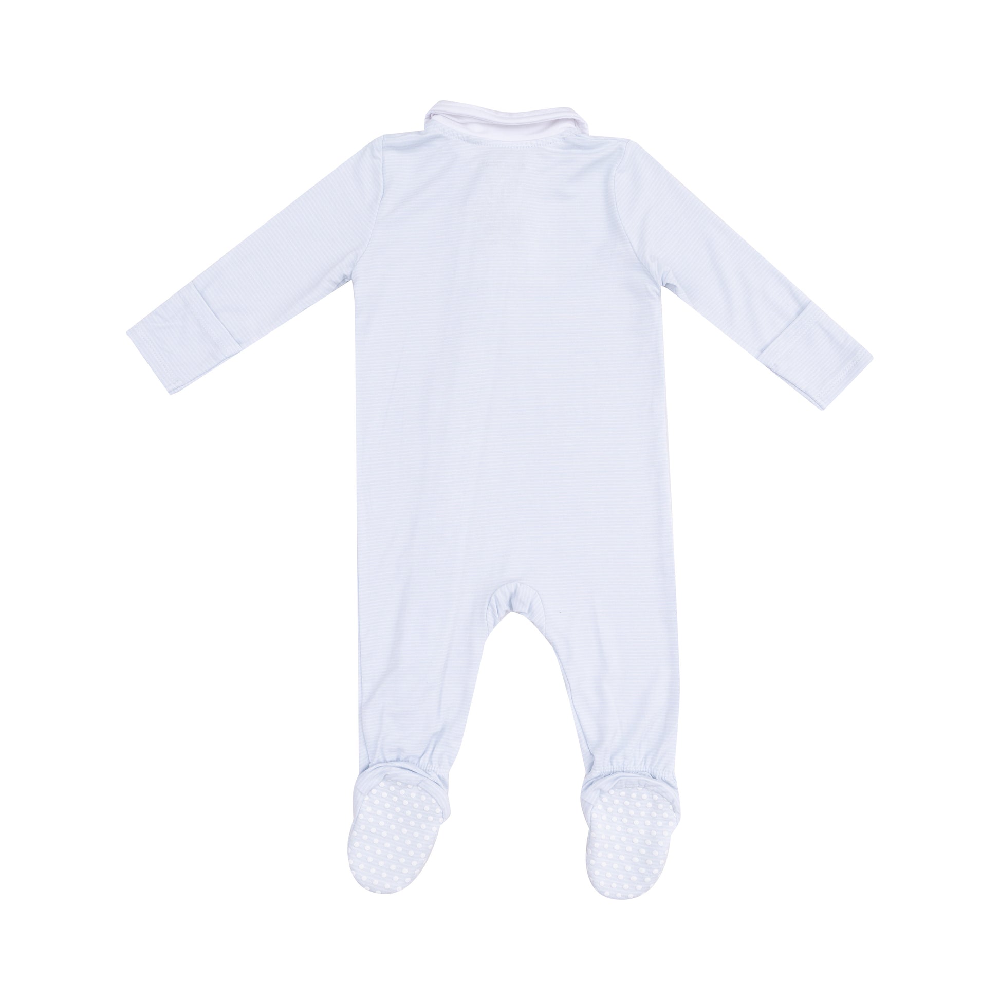 Stripe Classic Blue Polo 2 Way Zipper Footie