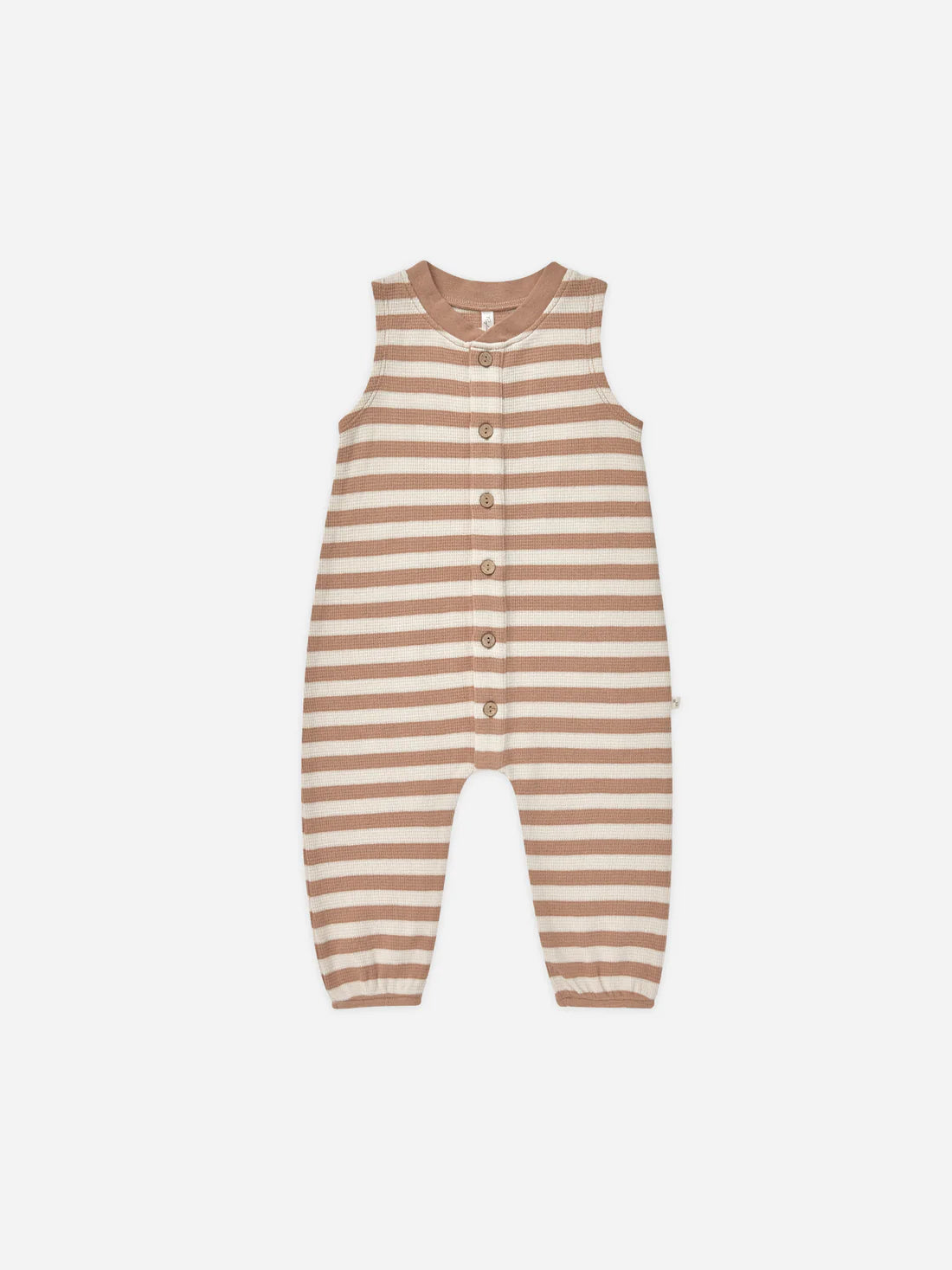 This easy-to-wear summer essential is made from the softest waffle knit cotton and features a sleeveless silhouette with buttons down front and elastic leg openings.