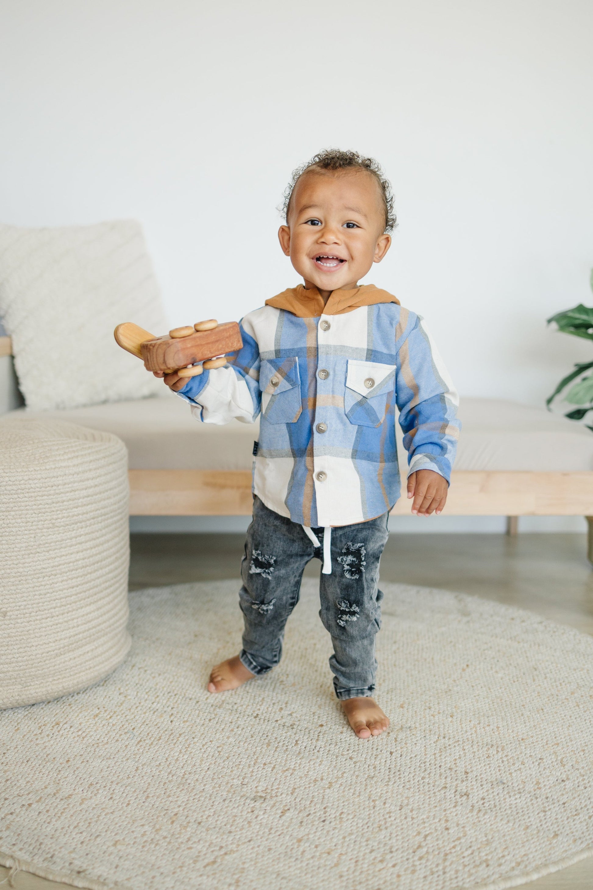 The Timber Jacket was made for your little lumberjack. This baggy fit flannel jacket is perfect for the great outdoors with it's double layers and the little chest pockets and the contrasting hood are the perfect accents. Everyone's going to love seeing your little one in it.